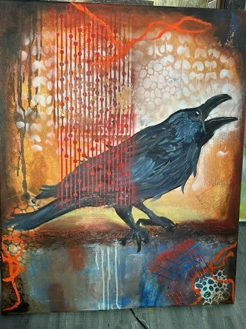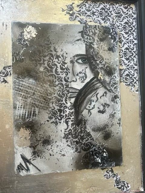 Jessica combines acrylic paints with unconventional elements like metallic leaf and organic materials to build rich, tactile surfaces. Each layer is applied with care, balancing spontaneous brushwork and deliberate detail to evoke cosmic and dreamlike themes.